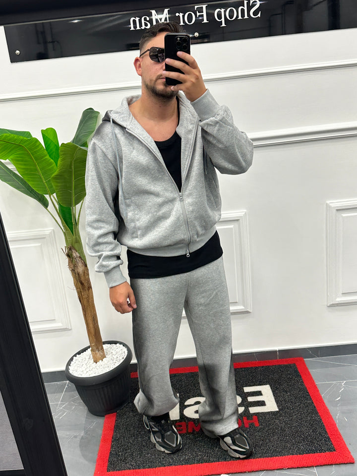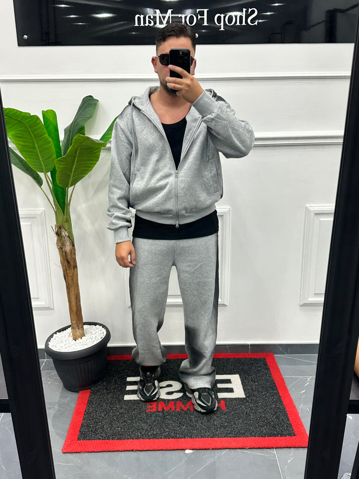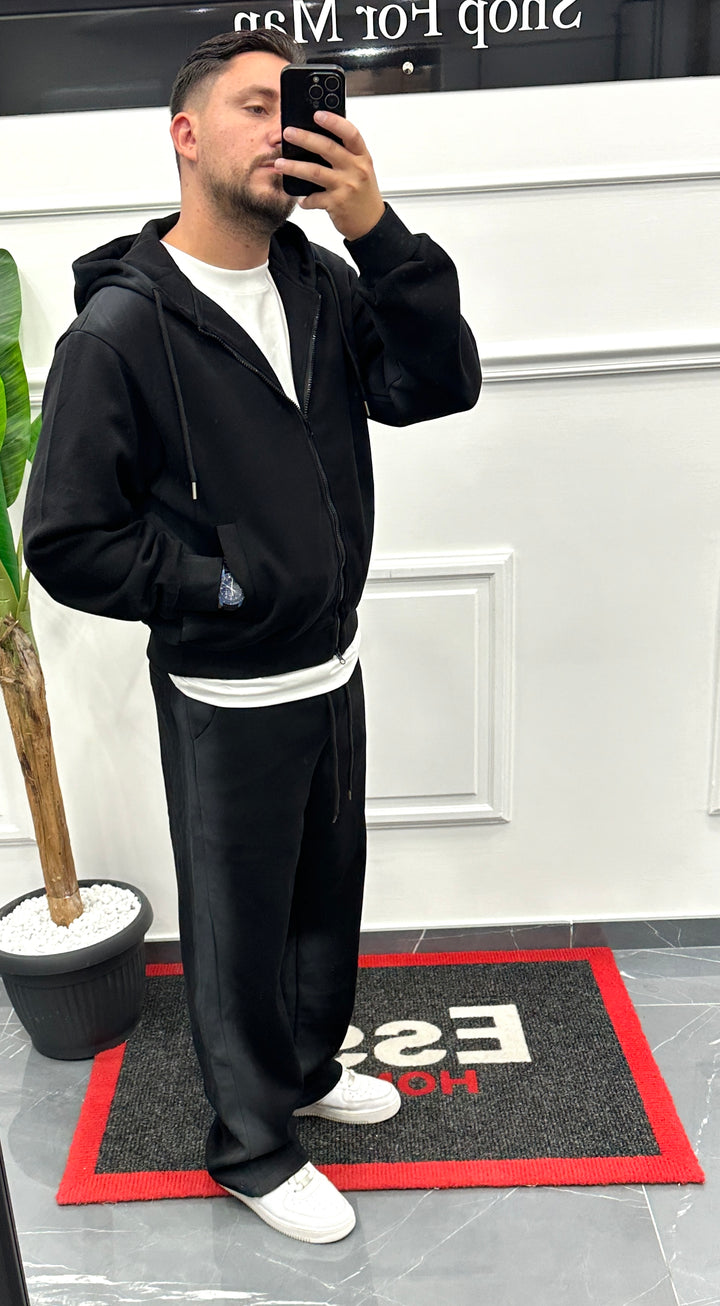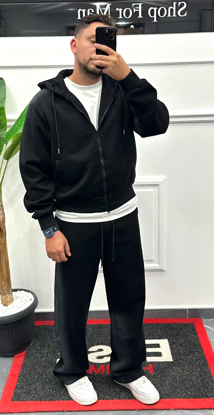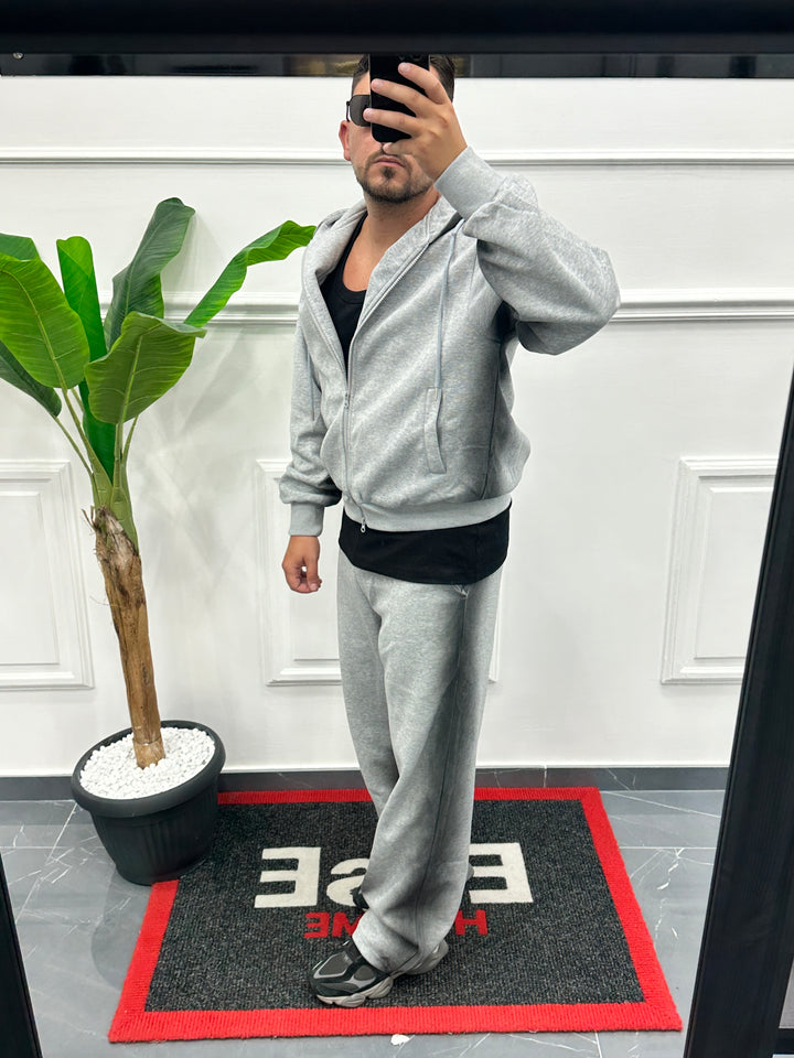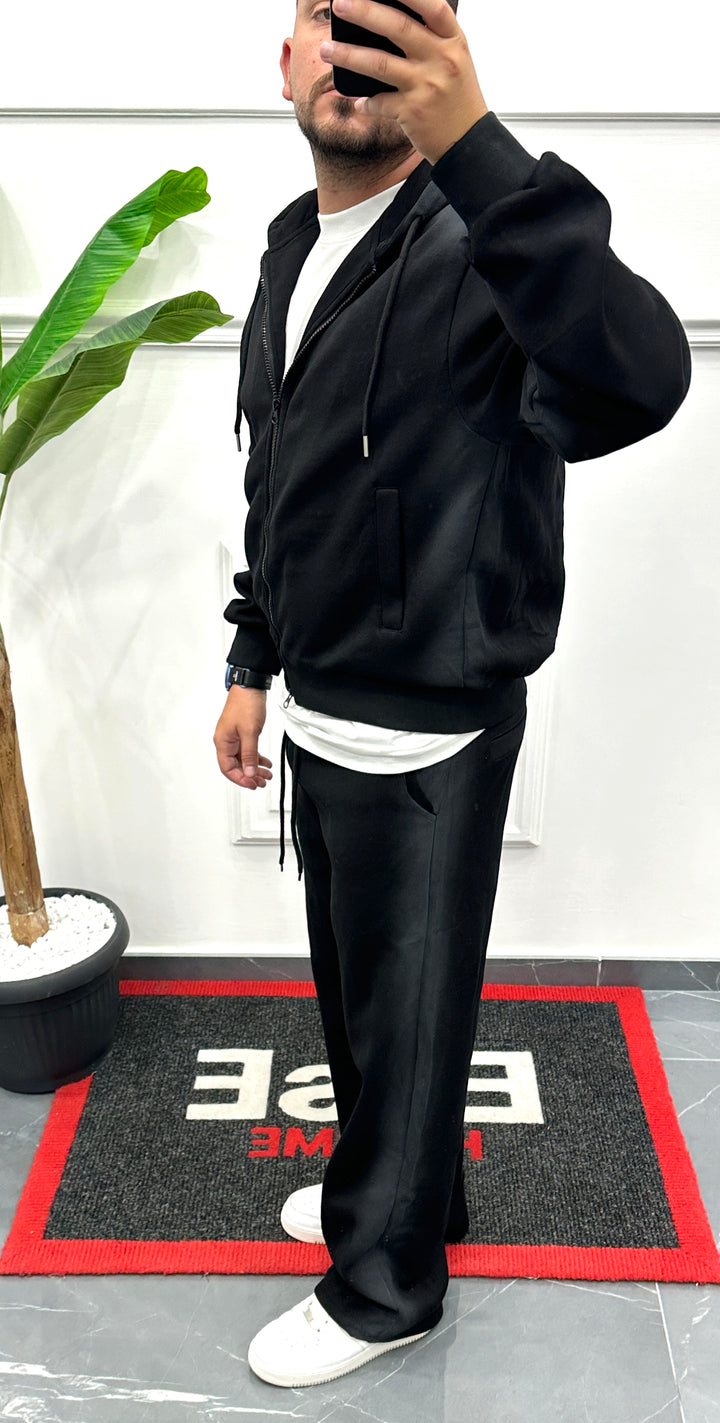 COORDINATO CON PANTALONE FONDO AMPIO E GIUBBOTTO CON CAPUCCIO E ZIP CENTRALE