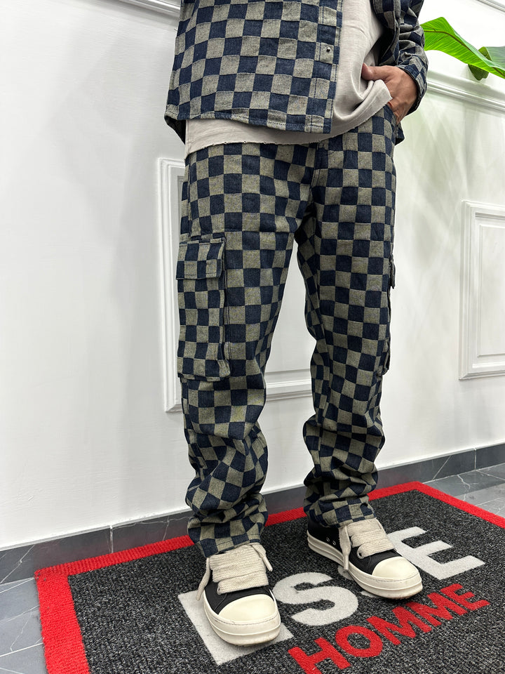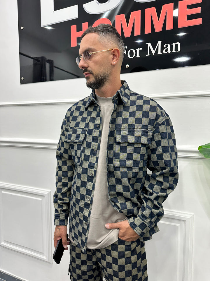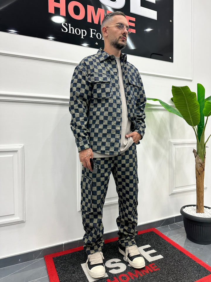 COORDINATO IN JEANS COMPOSTO DA PANTALONE AMPIO E JACKET A CONTRASTO DI COLORE