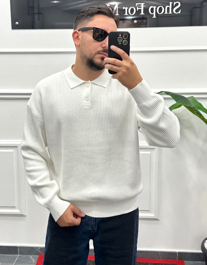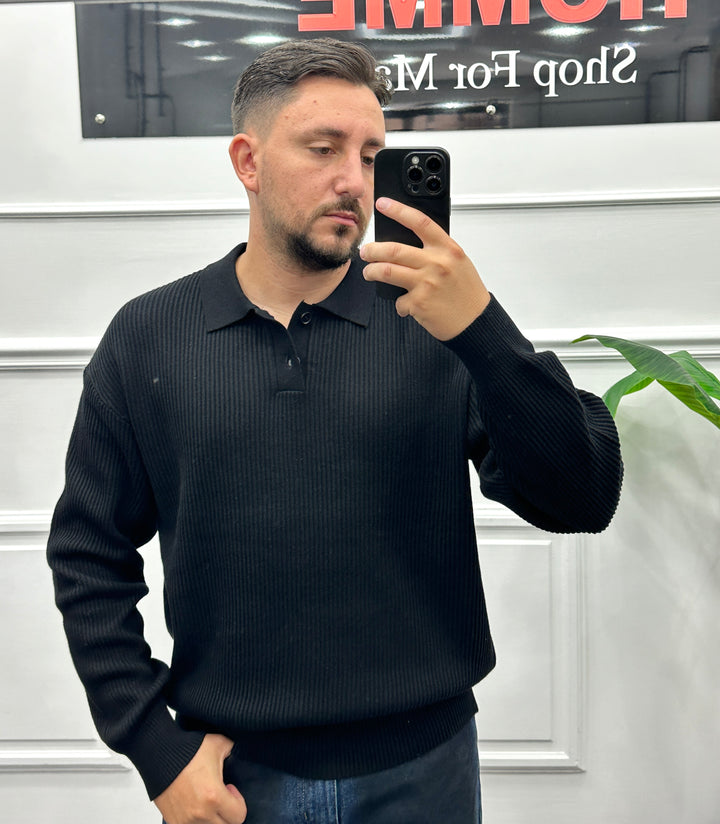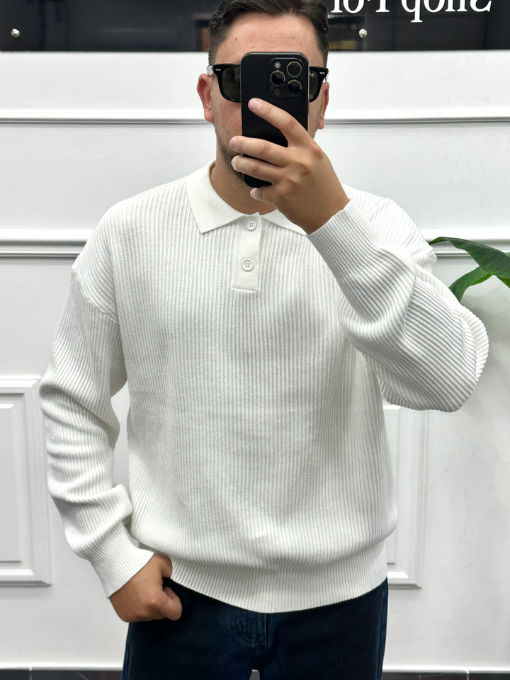 Polo 2 bottoni manica lunga a costine vestibilita semi over Size