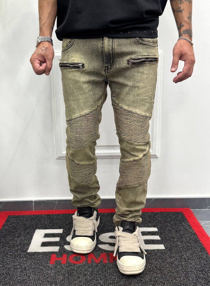 JEANS MODELLO BIKER LAVAGGIO SABBIATO CON ZIP CENTRALI ALLE TASCHE