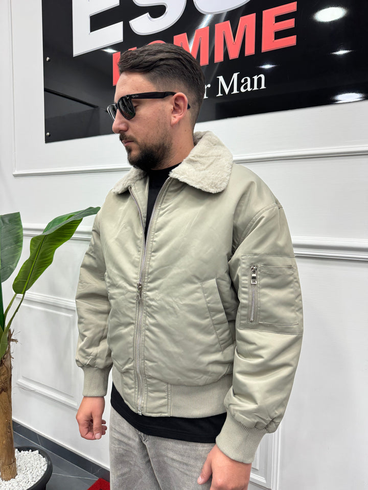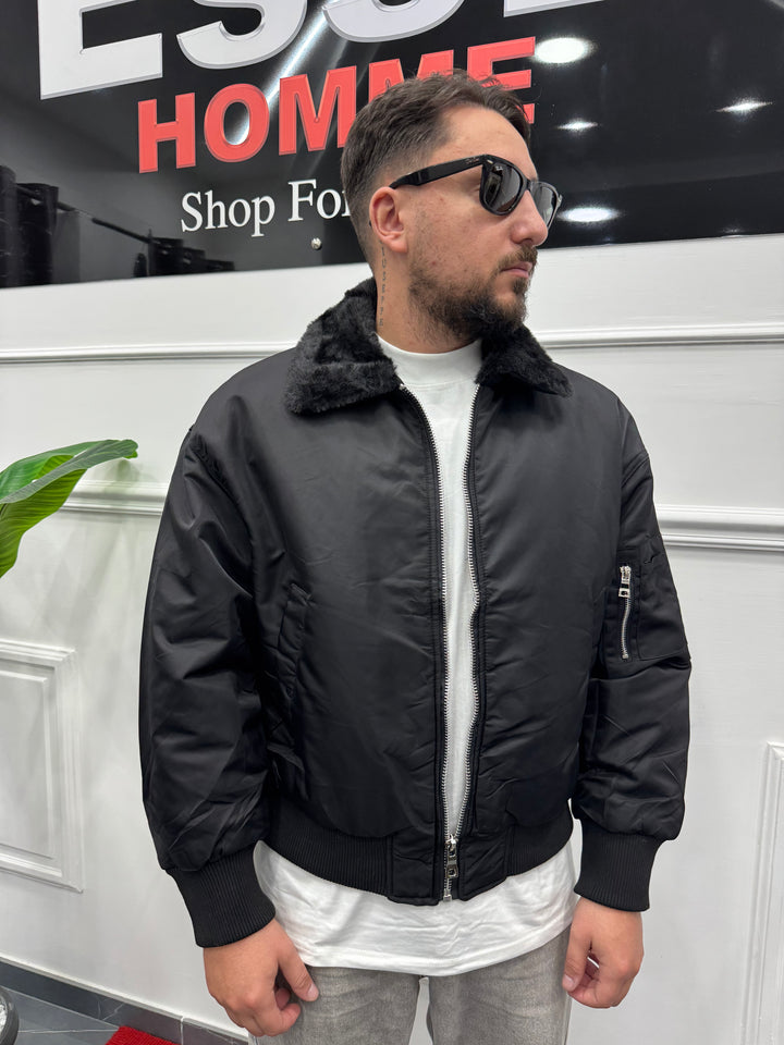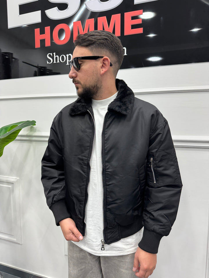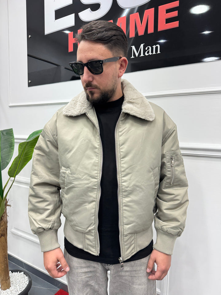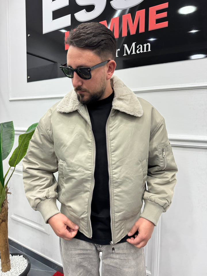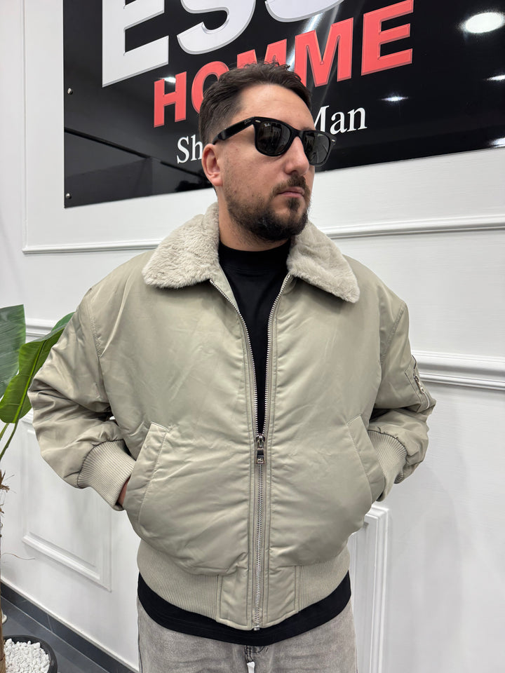 GIUBBOTTO BOMBER IN TESSUTO NYLON CON COLLETTO IN PELLICCIA ED ELASTCIO AI POLSI DISPONIBILE IN 2 VARIANTI DI COLORE