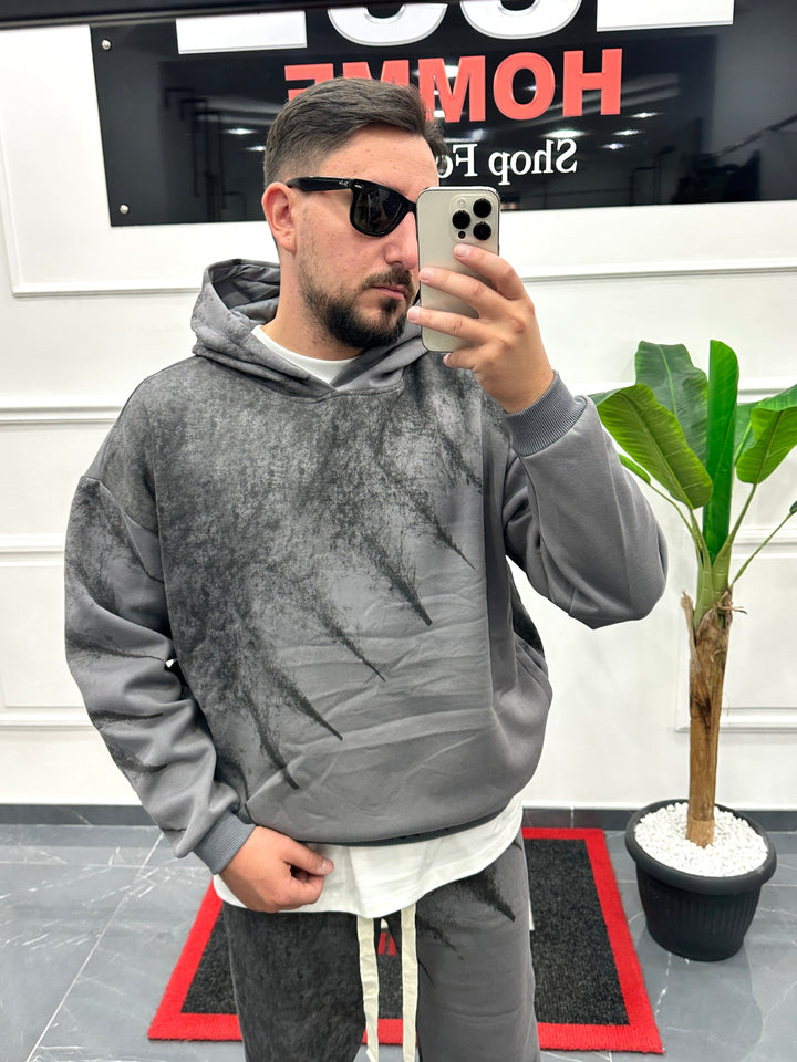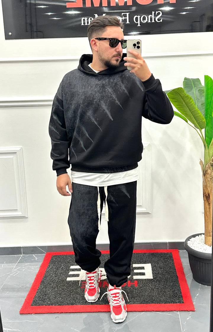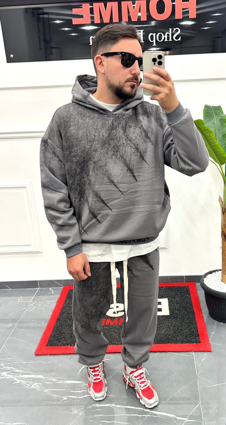COORDINATO COMPOSTO DA PANTALONE CON ELASTICO AL FONDO E FELPA CON CAPPUCCIO CON SFUMATURE
