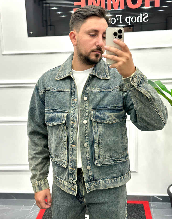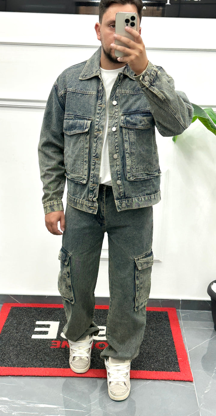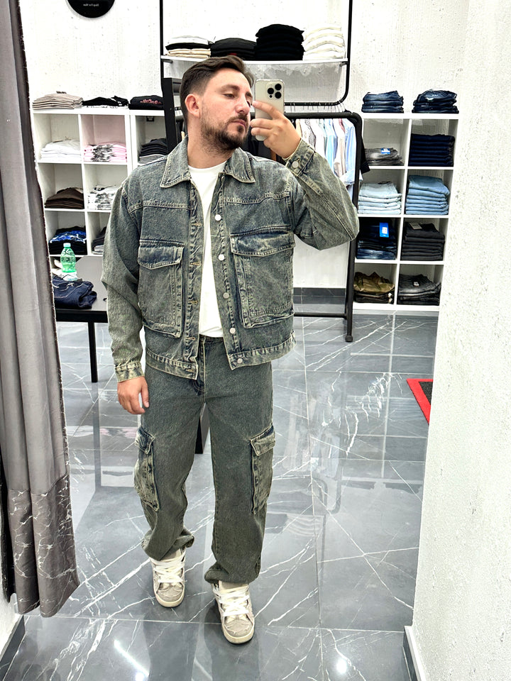 COORDINATO COMPOSTO DA UNA GIACCA IN JEANS E UN DENIM VESTIBILITA BAGGY