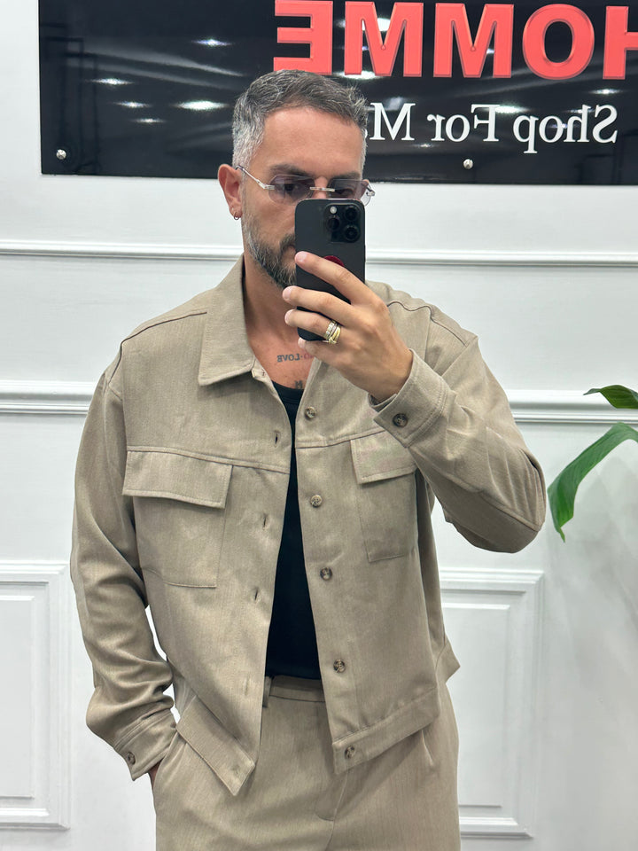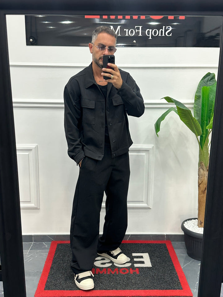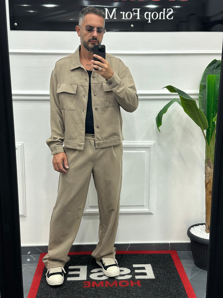 COORDINATO COMPOSTO DA PANTALONE FONDO AMPIO E JACKET CON TASCHE PATTINA VESTIBILITA CROOP