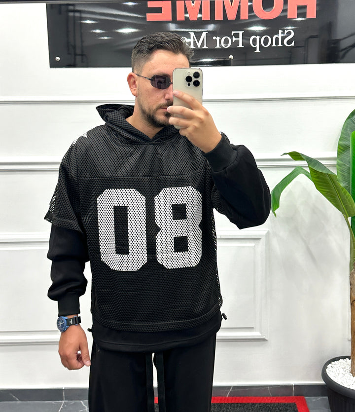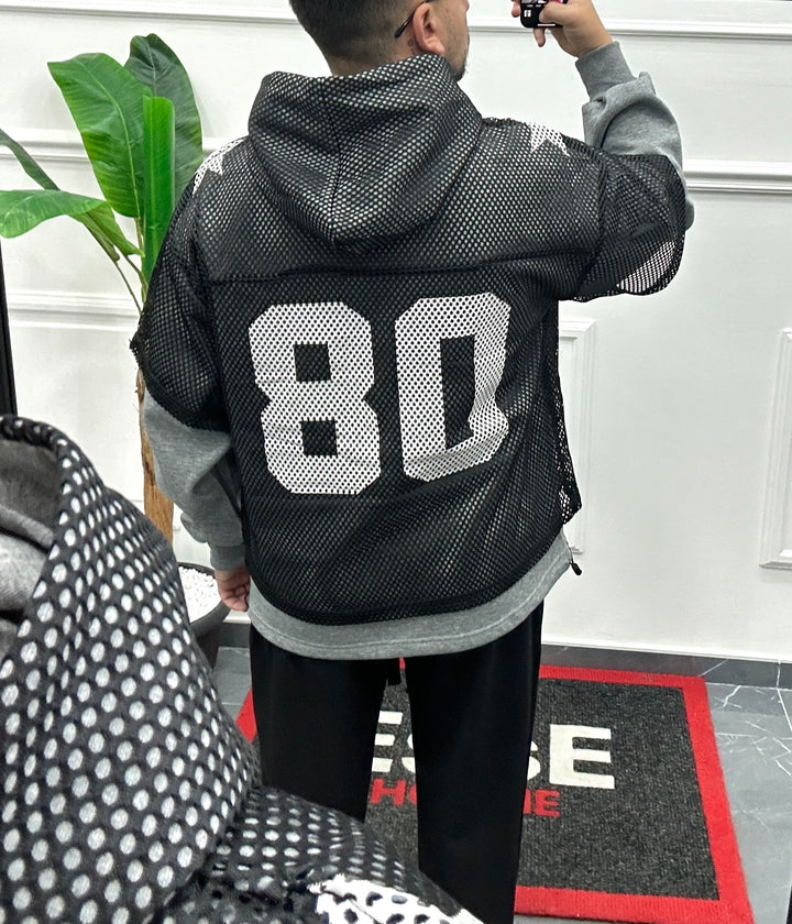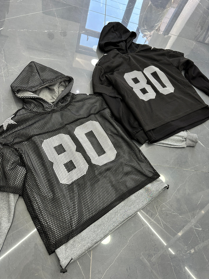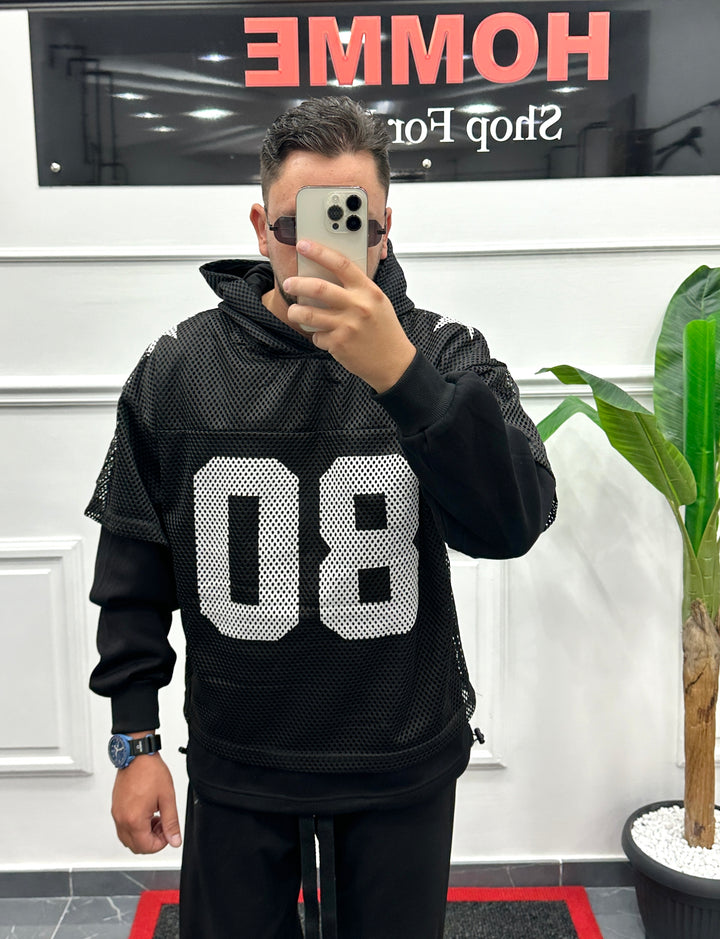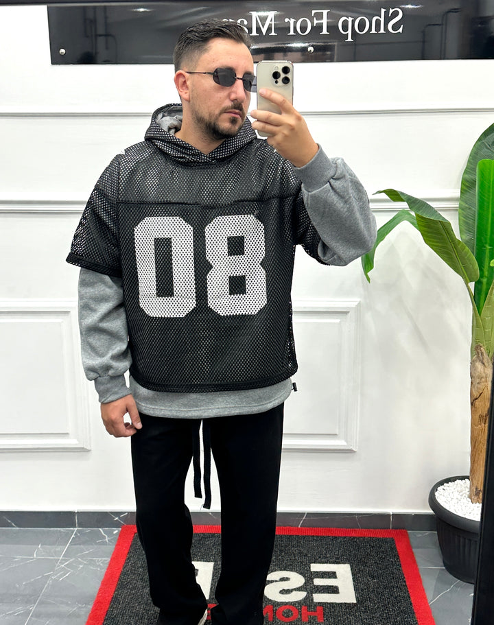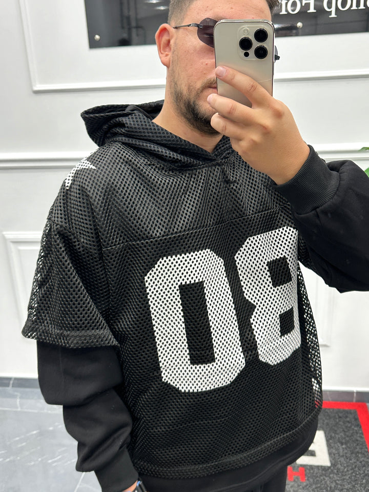 FELPA CON SHIRT IN RETE SOVRAPPOSTA CON STAMPA CENTRALE