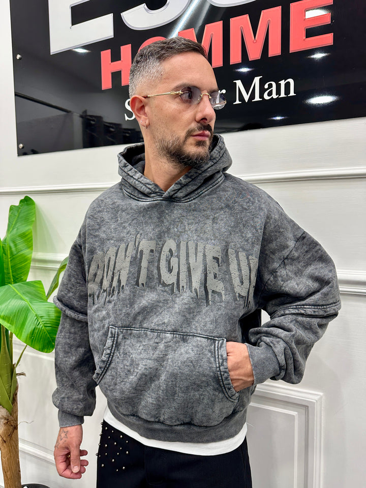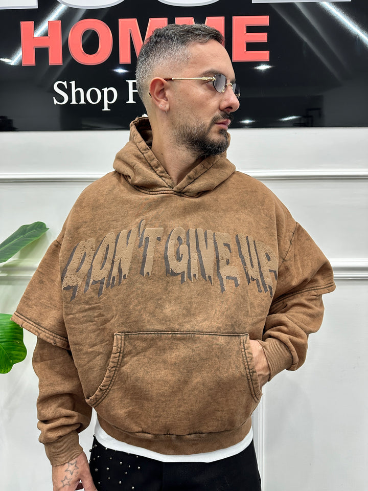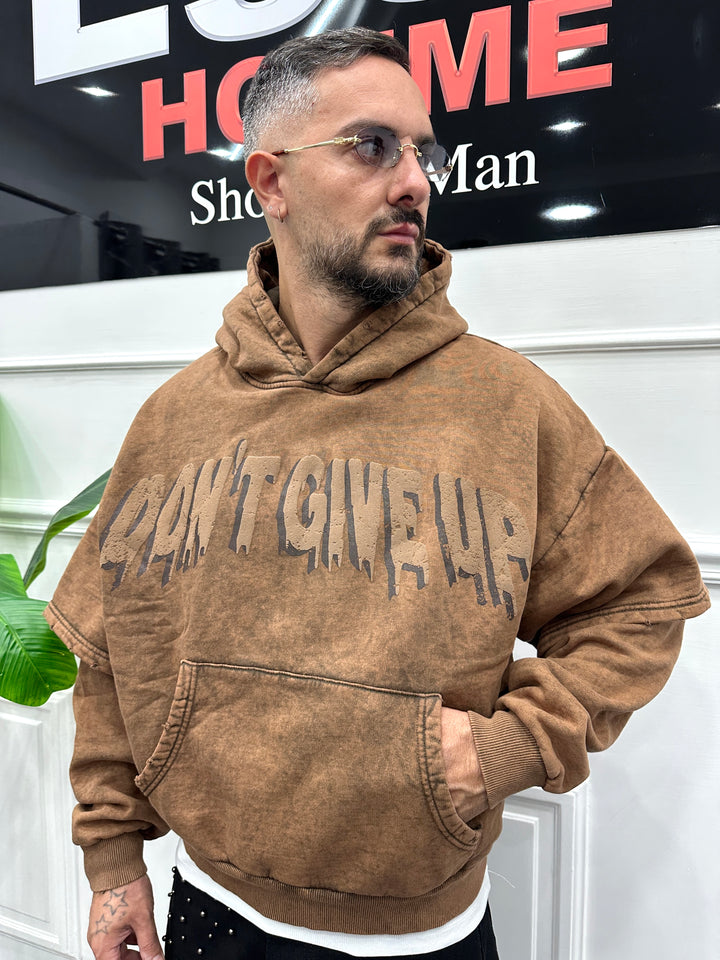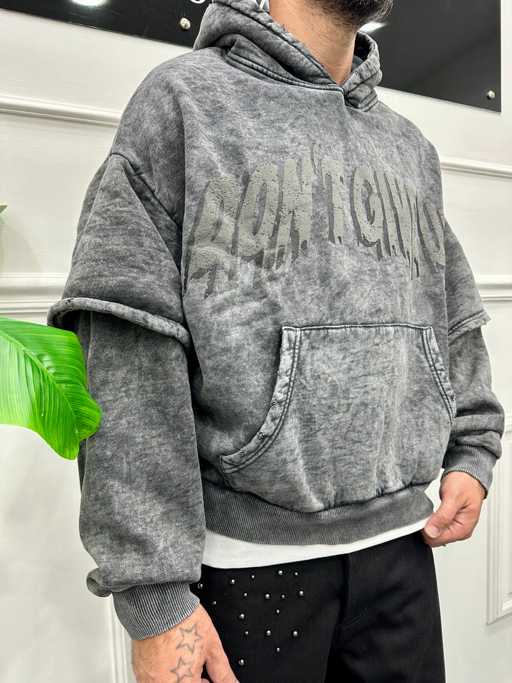 Felpa doppia manica lavaggio a freddo spettacolare con cappuccio e stampa puffer frontale