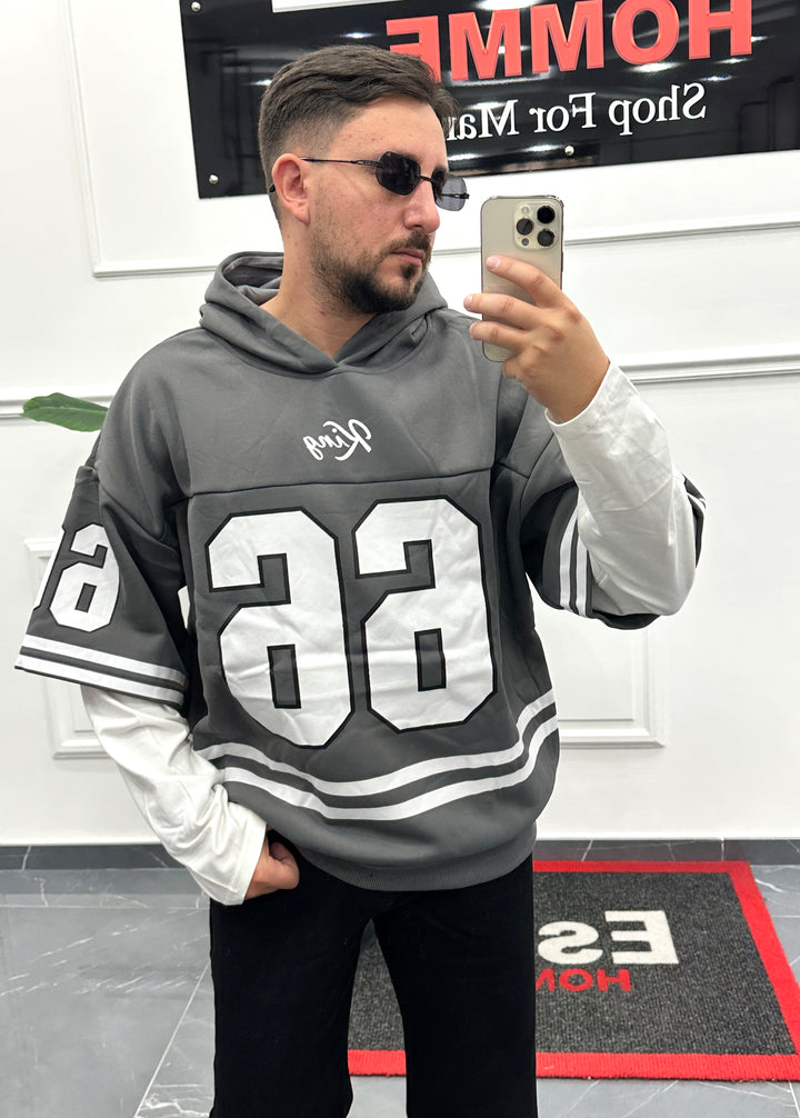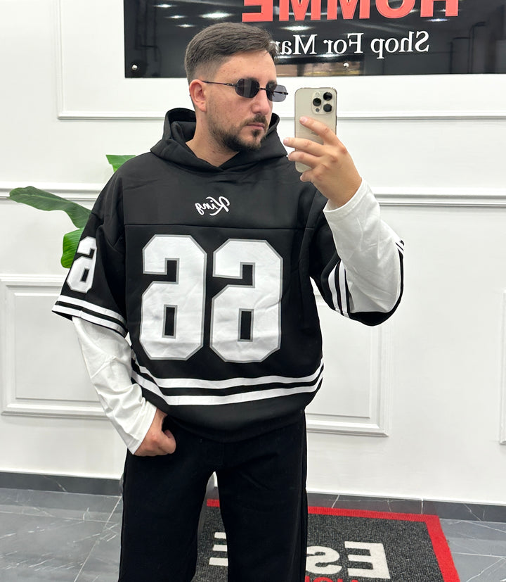 FELPA CON DOPPIA MANICA STAMPA FRONTALE E SULLE SPALLE VESTIBILITA SEMI OVER