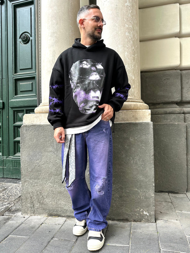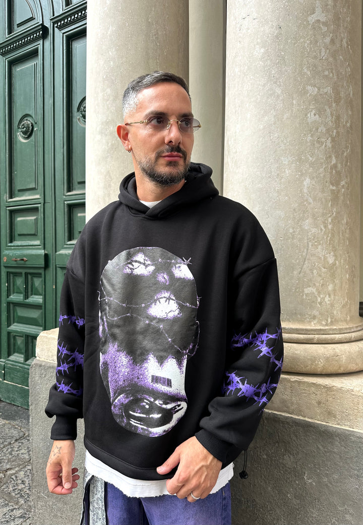 Felpa con cappuccio stampa frontale e sulle maniche
