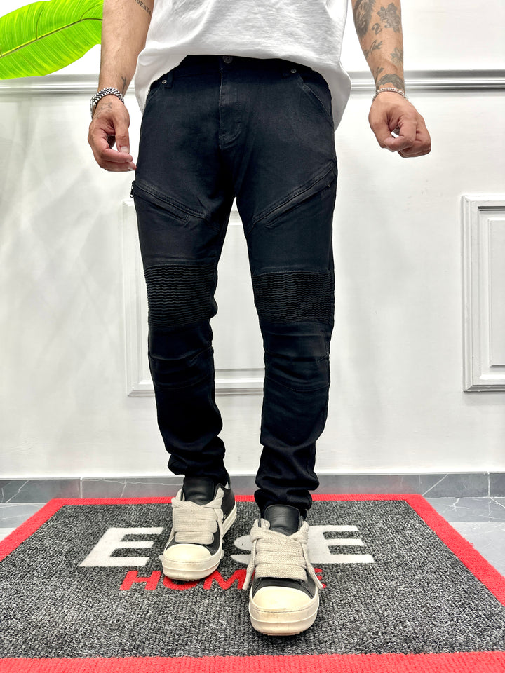 Jeans vestibilità Biker elasticizzato lavaggio nero con zip