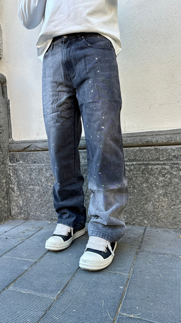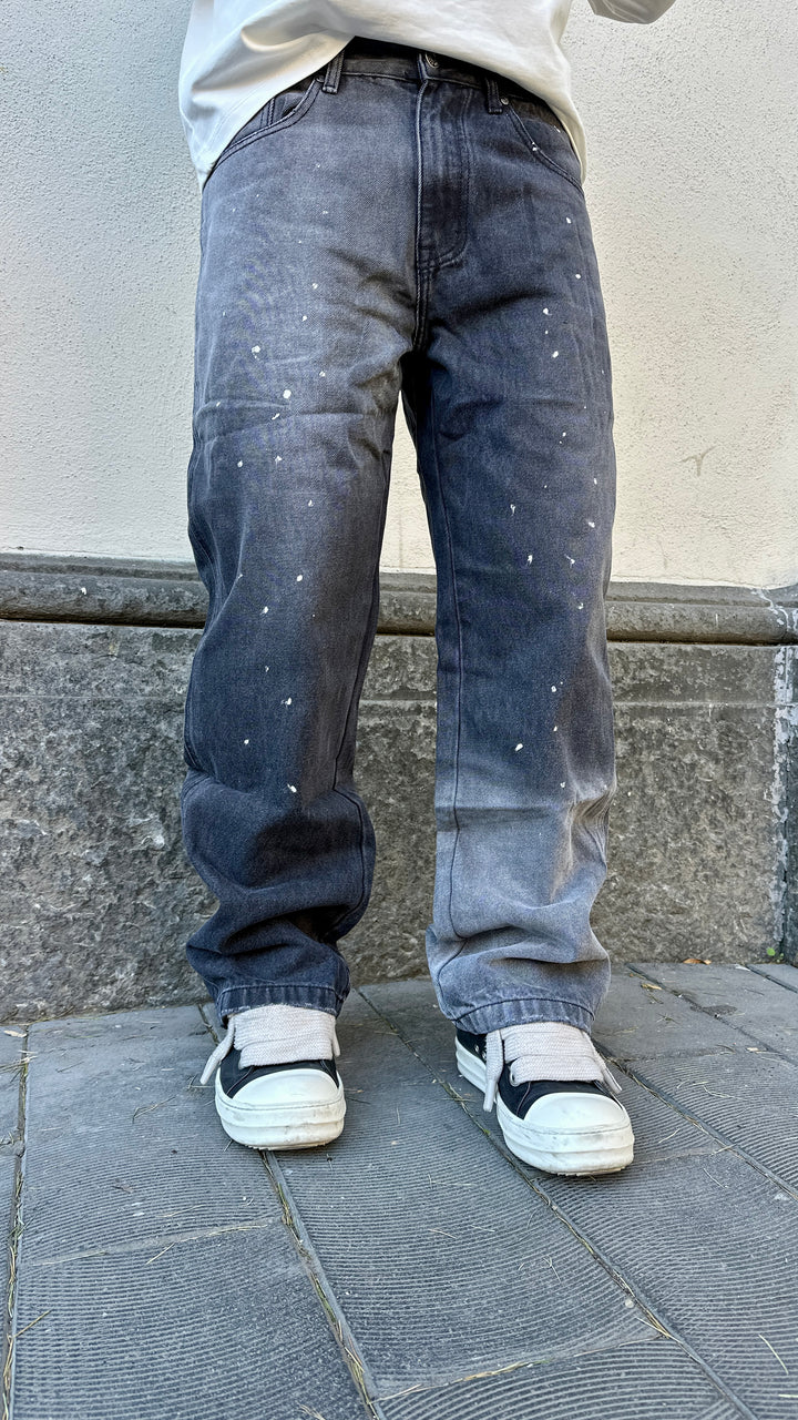 Jeans vestibilita baggy fit lavaggio DEGRADE con pittura