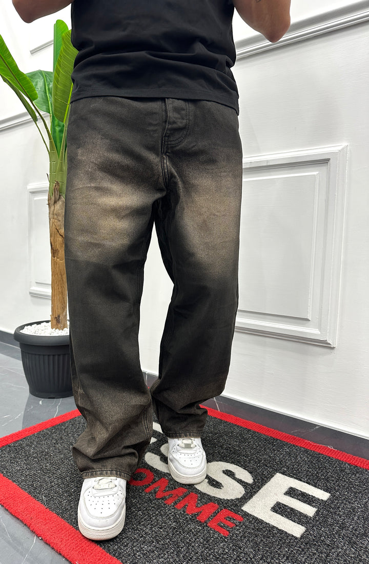 JEANS BAGGY LAVAGGIO MARRONE CON SPRUZZI NERI VESTIBILITA BAGGY