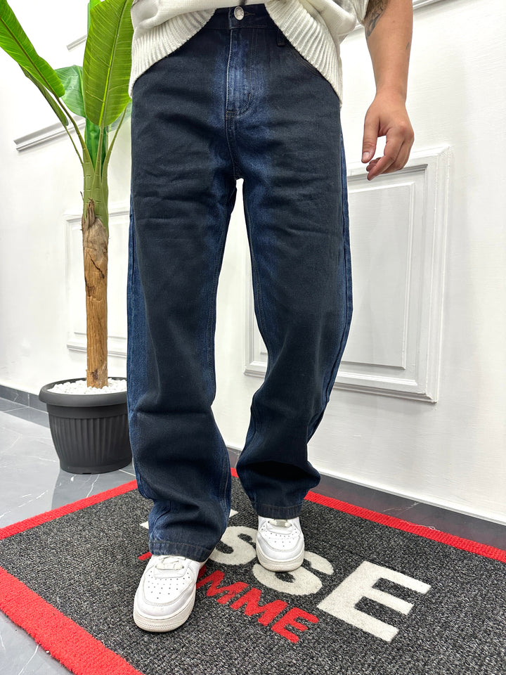 Jeans BAGGY fit lavaggio blu con spruzzo nero kk3032