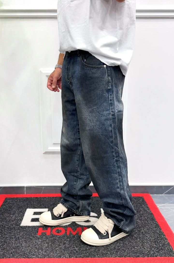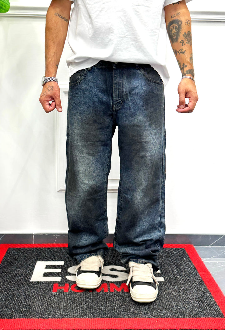 JEANS MODELLO BAGGY LAVAGGIO DENIM CON SFUMATURE A CONTRASTO