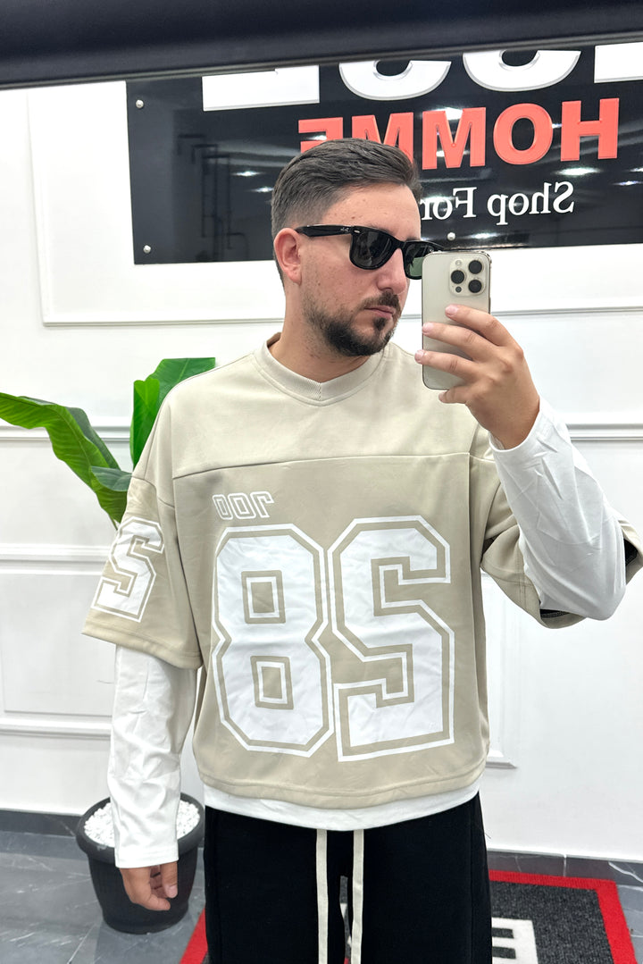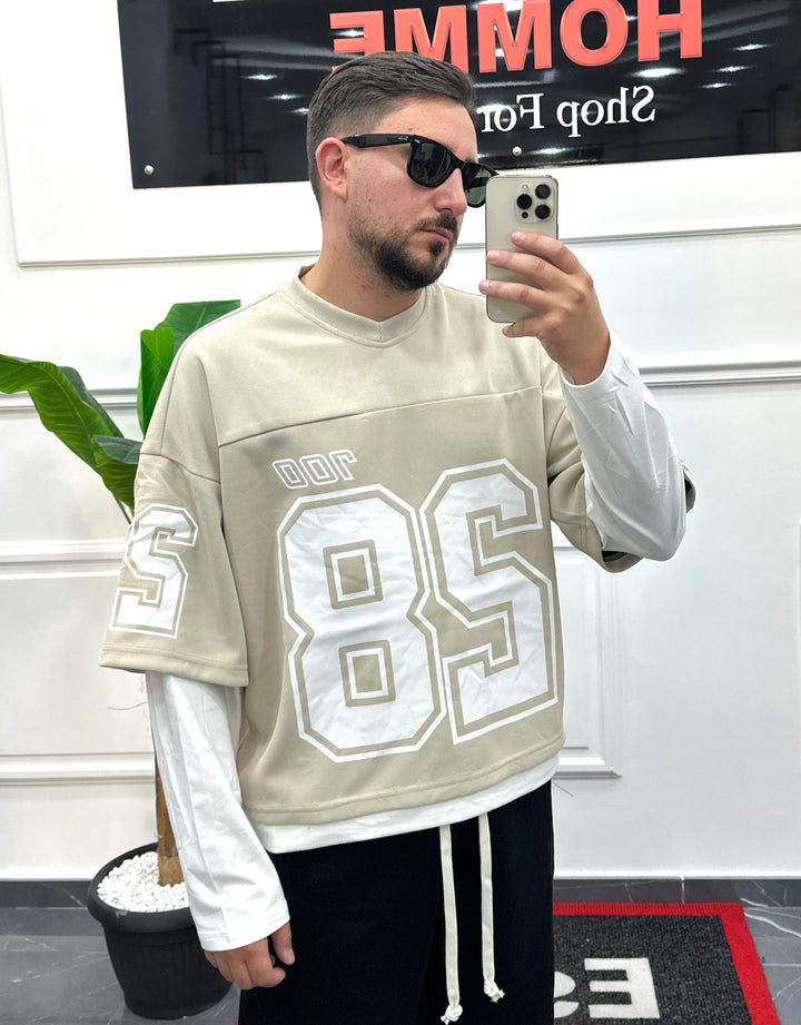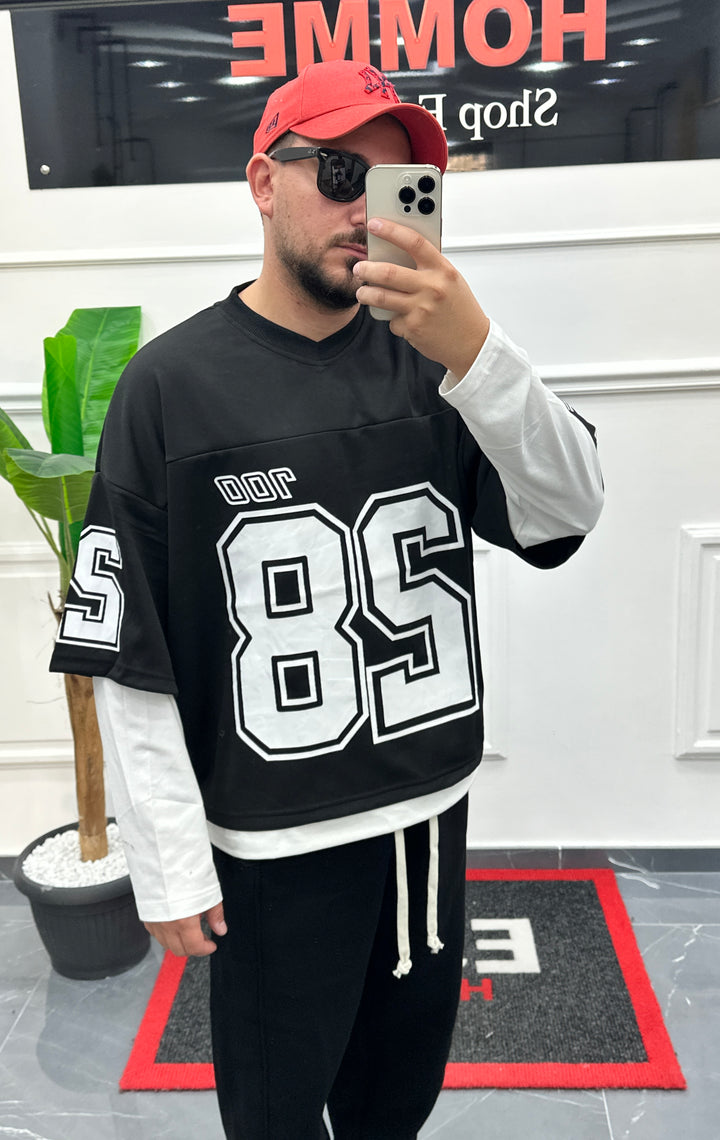 Maglia double con scollo a punta e stampa davanti e sulle maniche