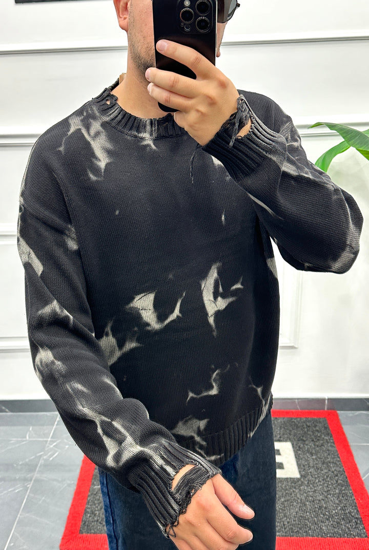 PULLOVER CON DETTAGLI CANDEGGIATI E ROTTURE