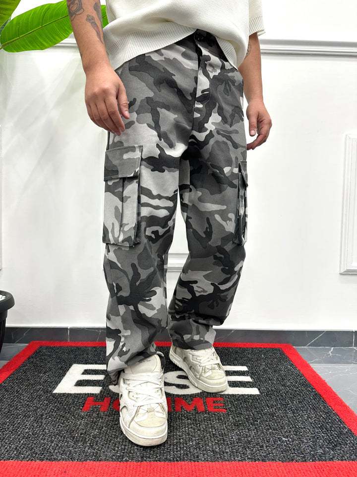PANTALONE CARGO IN FANTASIA MIMETICA GRIGIA CON DOPPIO TASCONE LATERALE