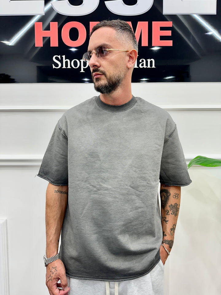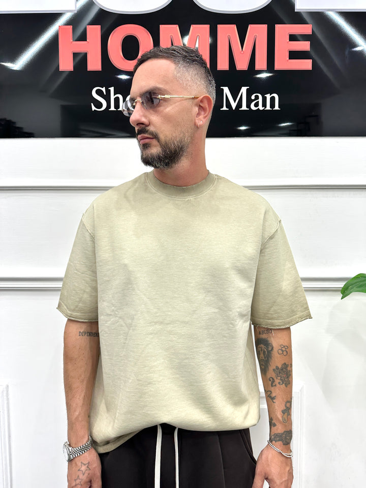 SHIRT CROP FIT CON STAMPA SUL RETRO TESSUTO DOPPIATO INTERNO GARZATO